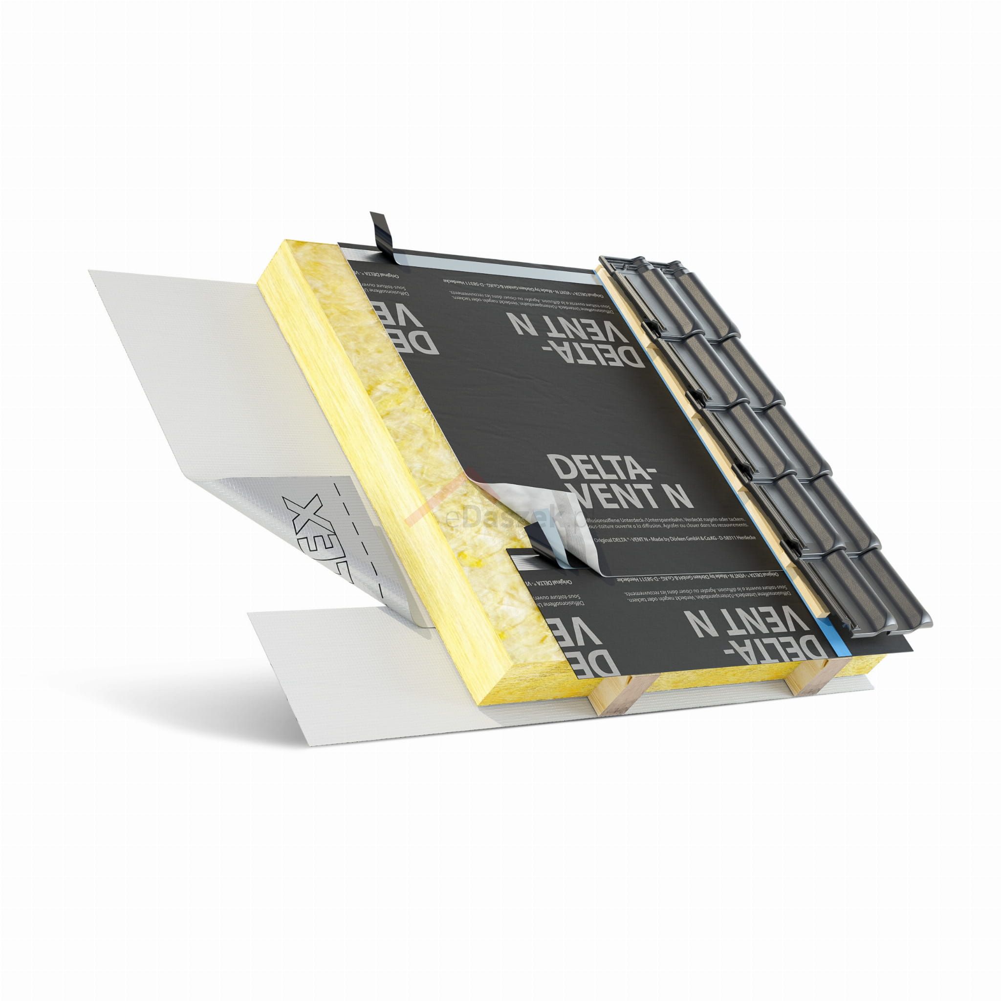 Otwarta dyfuzyjnie membrana wstępnego krycia na dachy spadziste w pełni izolowane. Posiada obustronnie zintegrowane brzegi samoklejące. DELTA®-VENT N bez brzegów klejących.