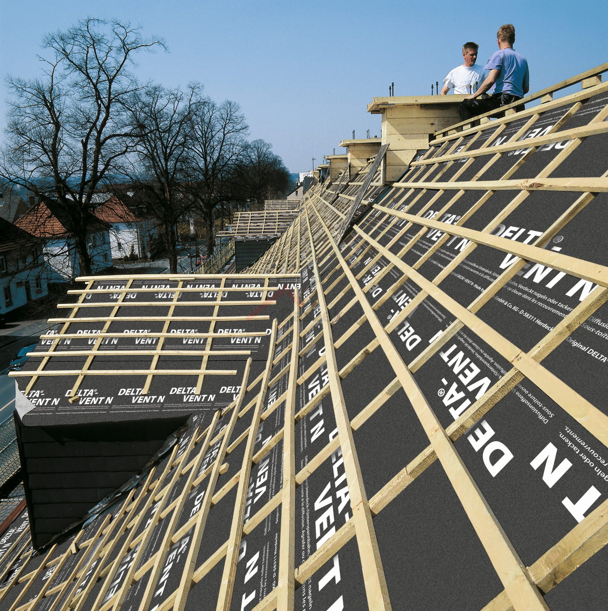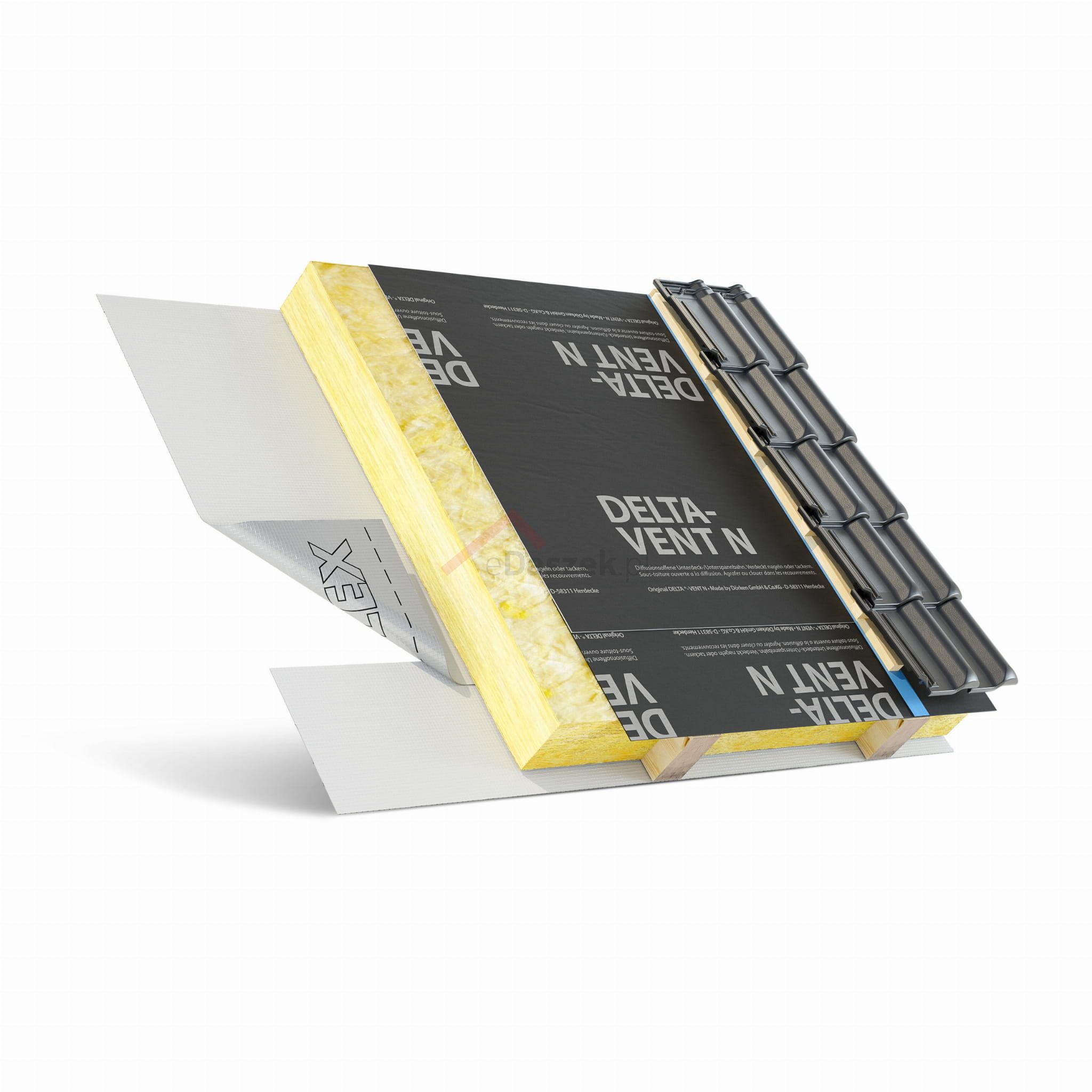 Otwarta dyfuzyjnie membrana wstępnego krycia na dachy spadziste w pełni izolowane. Posiada obustronnie zintegrowane brzegi samoklejące. DELTA®-VENT N bez brzegów klejących.