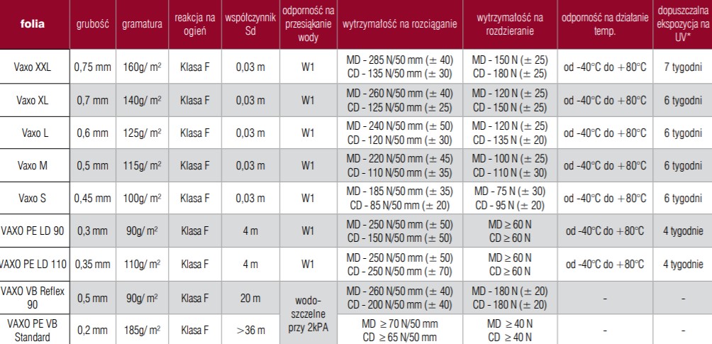VAXO to rodzina wielowarstwowych dyfuzyjnych membran dachowych stosowana w bezpośrednim kontakcie z izolacją termiczną. Produkt charakteryzuje się atrakcyjną ceną, przy jednoczesnym zachowaniu dobrych parametrów technicznych.