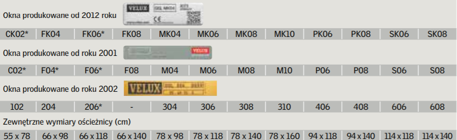 Dobierz rozmiar swojej markizy zewnętrznej Velux: