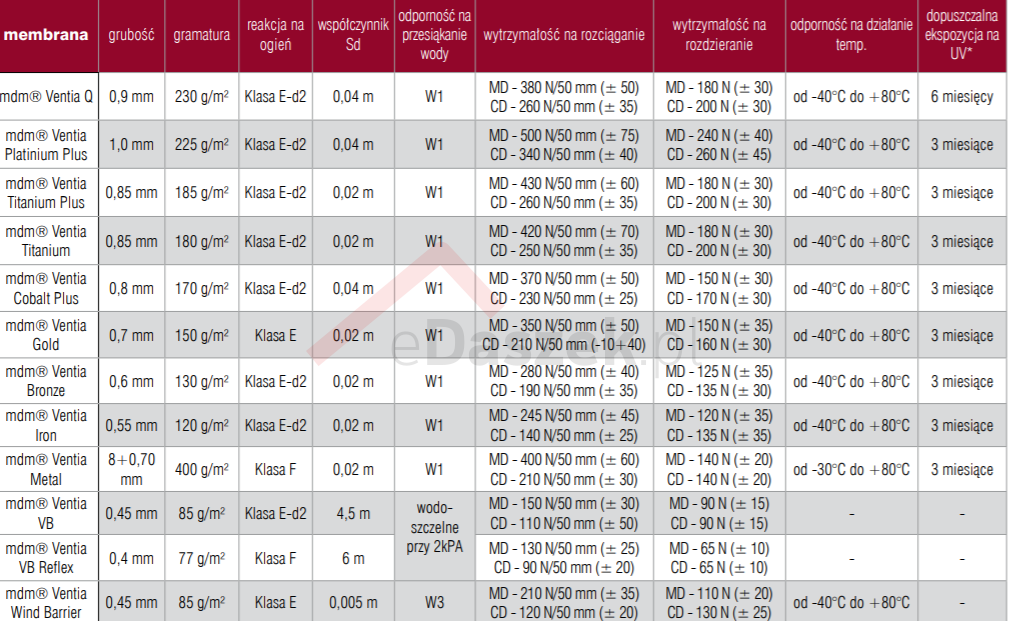 MEMBRANA DACHOWA MDM® VENTIA N IRON (TT) z dwoma paskami klejącymi. Podstawowa membrana dachowa z linii innowacyjnych produktów Ventia. Otwarta dyfuzyjnie, trójwarstwowa, posiada dobre parametry użytkowe oraz certyfikaty BBA i ZVDH. Wysokiej jakości produkt w atrakcyjnej cenie. Przeznaczona do stosowania na dachach skośnych, również bezpośrednio na termoizolacji. Nie może być stosowana na dachach z pełnym deskowaniem.