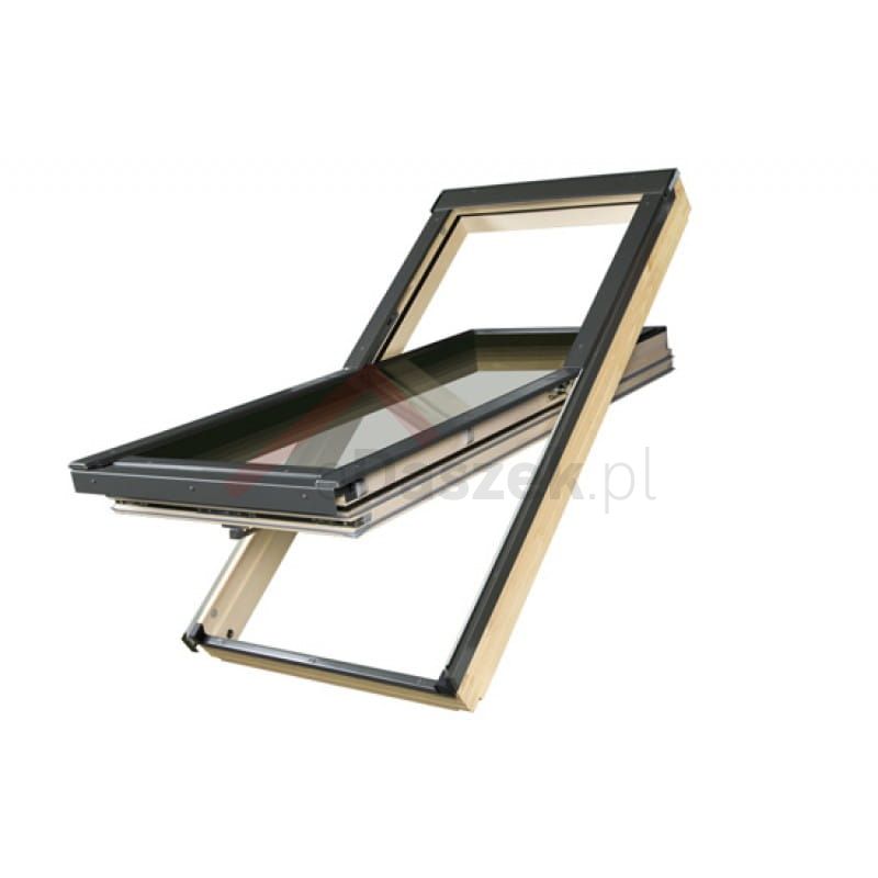 Okno FAKRO otwierane w połowie osi obrotu Drewniane FTT U8 THERMO