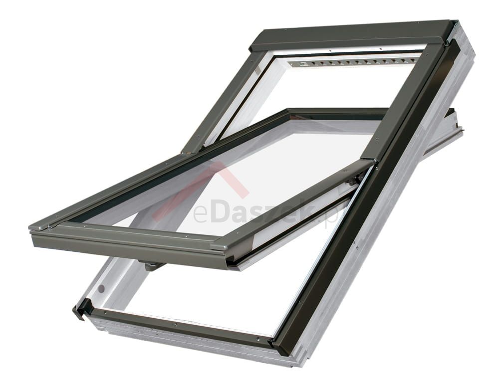 Okno FAKRO otwierane w połowie osi obrotu Drewniane lakierowane poliuretanem FTU-V U4