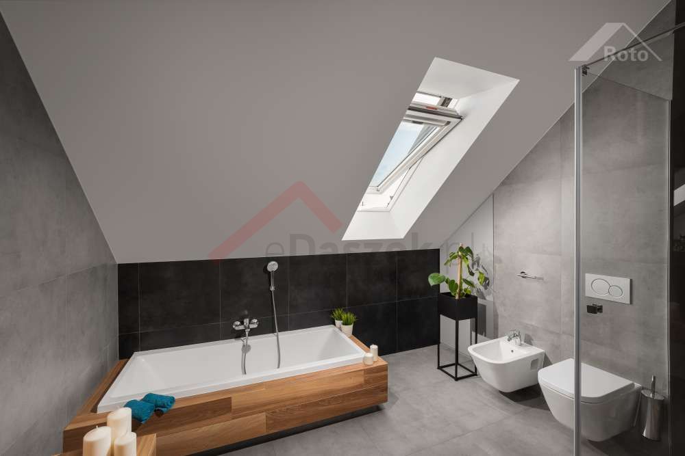 Okno dachowe ROTO otwierane w połowie osi obrotu Drewniane R68C H WD z pakietem 2-szybowym Comfort