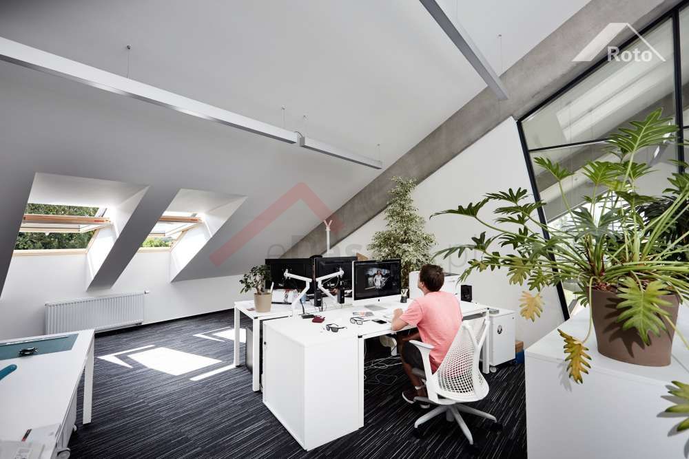Okno charakteryzuje się obniżonym montażem w dachu oraz nowoczesnym wzornictwem oblachowania zewnętrznego