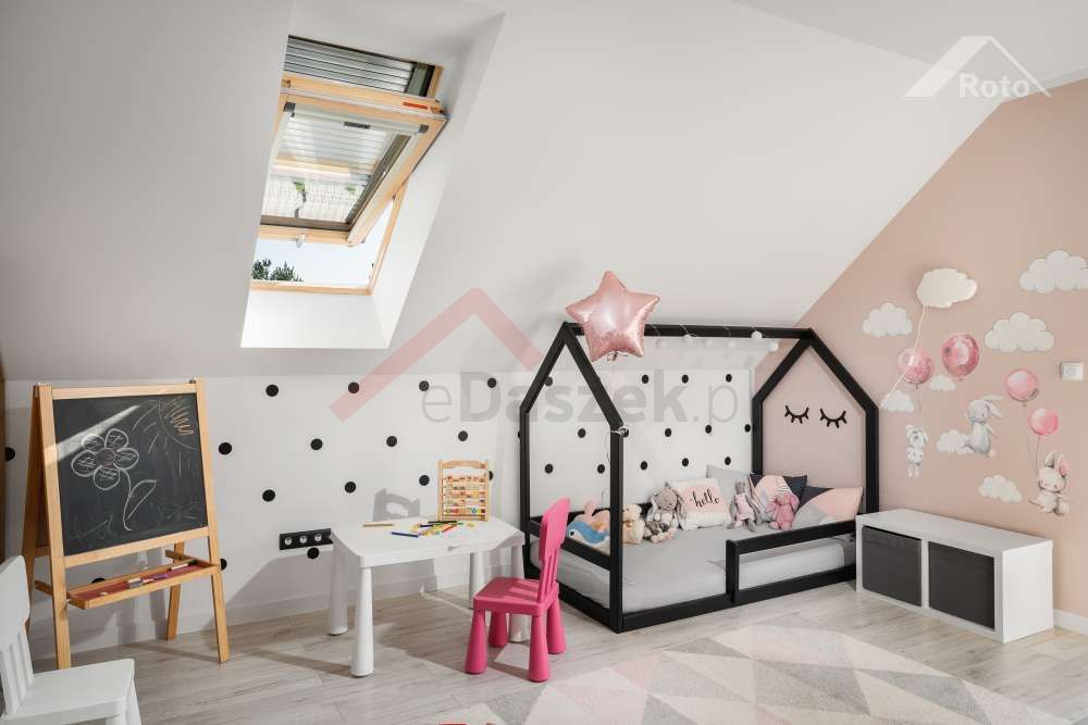 + harmonijna integracja okien z dachem z uwagi na ergonomiczny kształt, brak widocznych wkrętów, nowoczesny kolor oblachowania – antracyt metallic