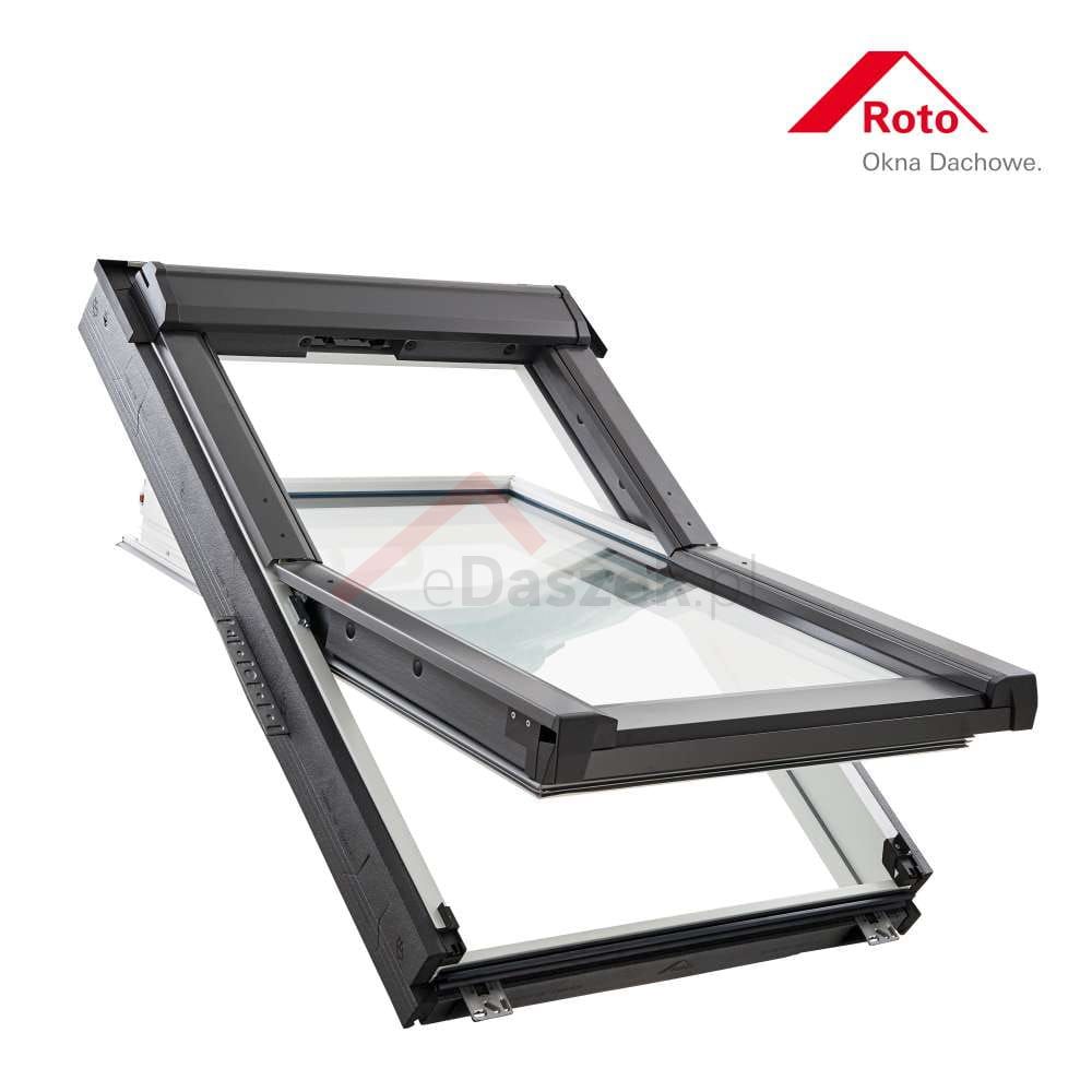 Okno dachowe ROTO otwierane w połowie osi obrotu PCV Q4 K2S z pakietem 2-szybowym Standard