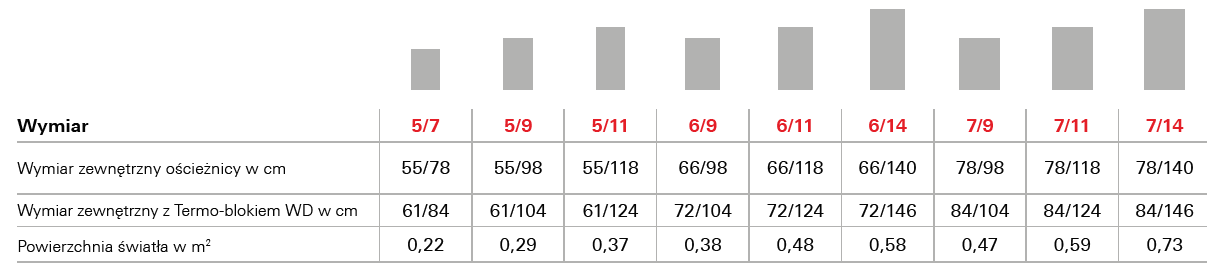 Wyposażone jest w Termo-blok WD, który dociepla ramę okna zapewniając optymalną temperaturę na poddaszu i niższe rachunki za ogrzewanie. Dostępne w 21 rozmiarach.
