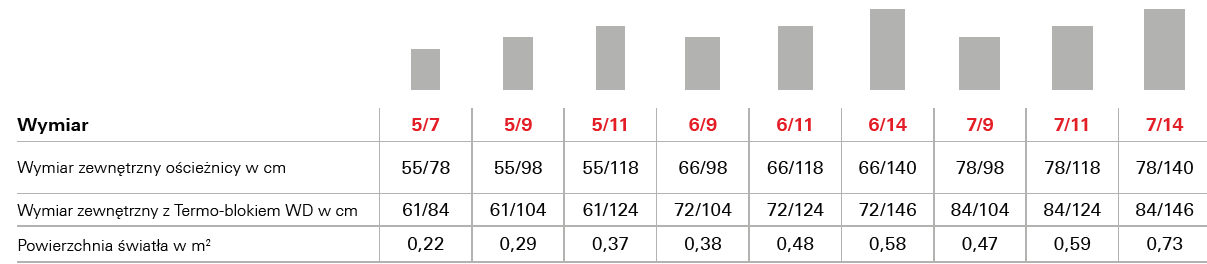 Wyposażone jest w Termo-blok WD, który dociepla ramę okna zapewniając optymalną temperaturę na poddaszu i niższe rachunki za ogrzewanie. Dostępne w 21 rozmiarach.