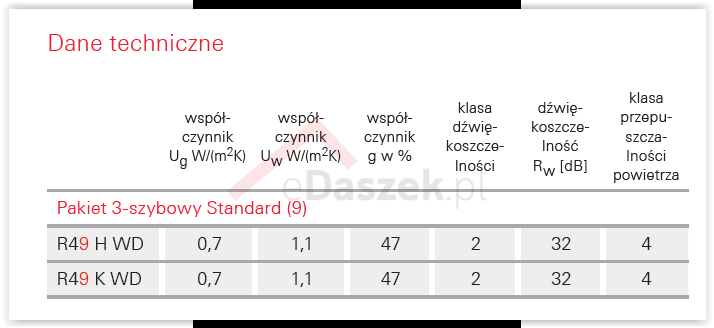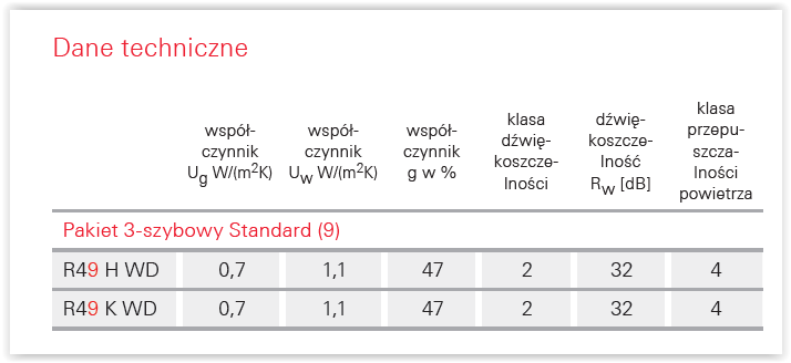 Cechy szczegółowe okna wysokoosiowego Roto R49 H WD z pakietem trzyszybowym: