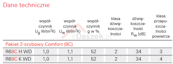 Cechy okna dachowego ROTO R68C szczegółowe: