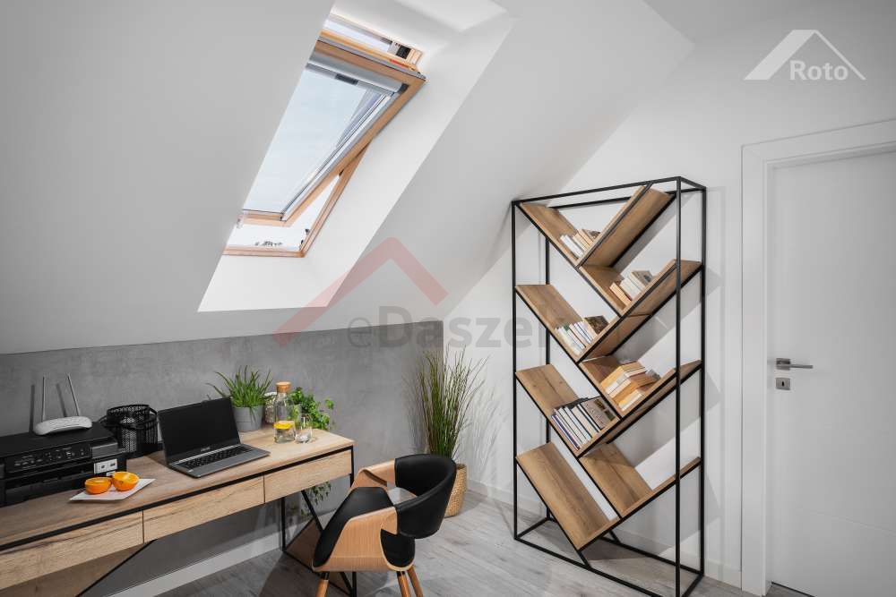 Okno charakteryzuje się obniżonym montażem w dachu oraz nowoczesnym wzornictwem oblachowania zewnętrznego