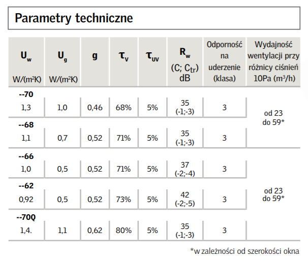 - W wariancie okna z szybą –62 nie ma możliwości wentylacji poprzez klapę wentylacyjną Wygodna obsługa