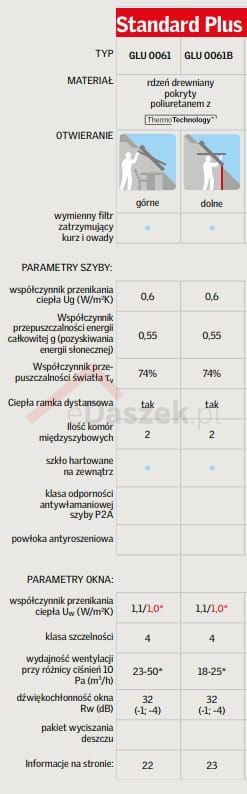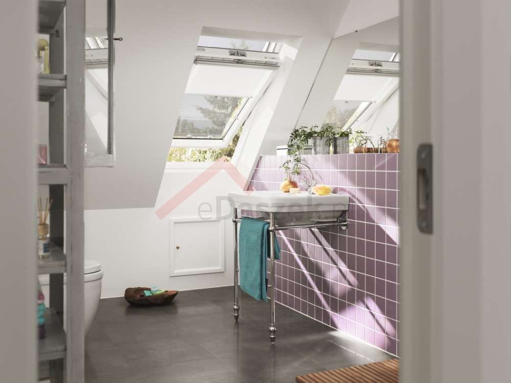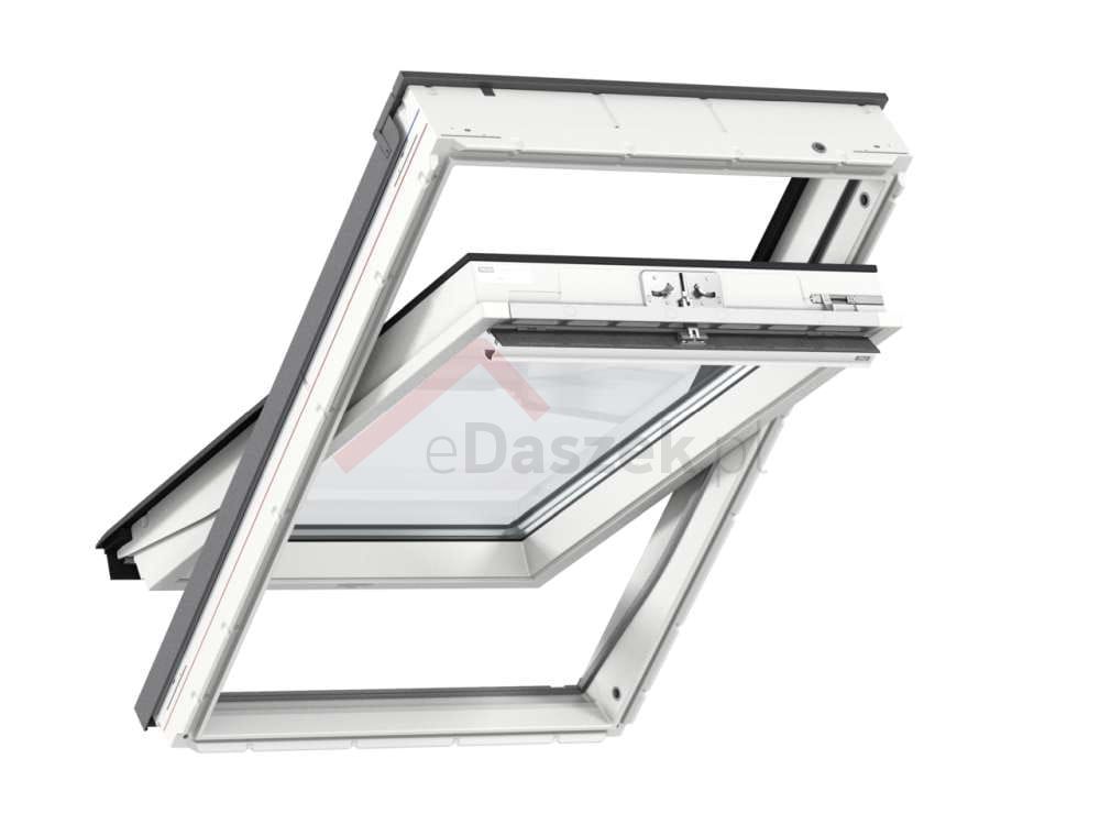 Okno VELUX otwierane w połowie osi obrotu PCV GLU klamka na górze 0061 z pakietem 3-szybowym