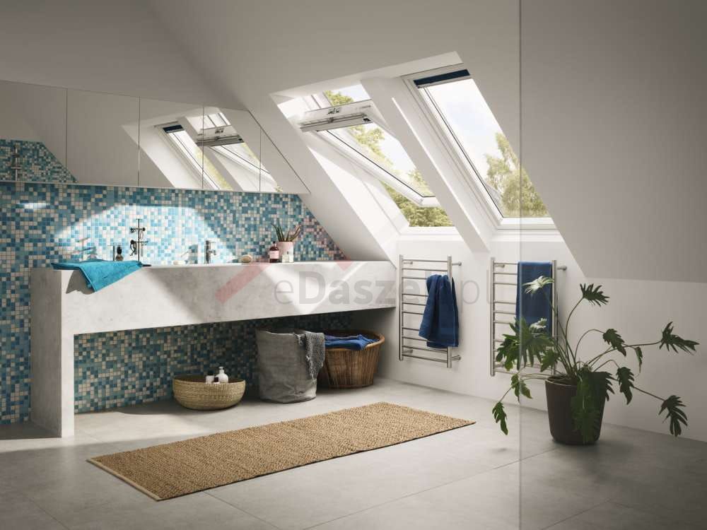 Okno 3 szybowe drewniano-poliuretanowe otwierane w połowie osi obrotu Velux GLU 0061