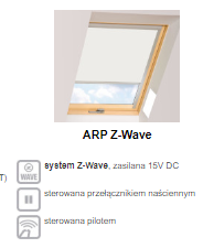 W standardowej wersji działanie rolety ARP Z-Wave możliwe jest tylko przy zamkniętym oknie. Roleta współpracuje z produktami elektrycznymi FAKRO wyposażonymi w system Z-Wave jak np. okno FTP-V Electro Z-Wave czy roleta AMZ Z-Wave.