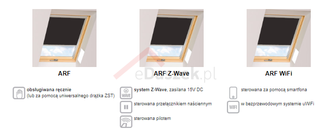 - ARF obsługiwana ręcznie (do obsługi wysoko zamontowanej rolety ARP służy uniwersalny drążek ZST),