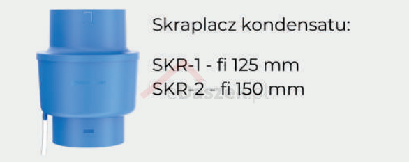 - skraplacz Kronoplast kondensatu o średnicy 125 mm i 150 mm z wentylatorem i zaworem zwrotnym