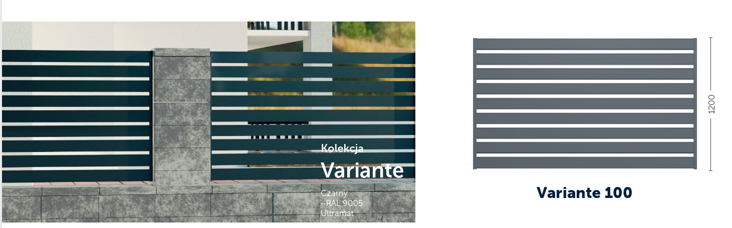 System ogrodzeń VARIANTE – kolekcja wyjątkowa, dzięki której otoczenie posesji zyska na elegancji i będzie z pewnością nietuzinkowe. Oprócz solidnego zabezpieczenia daje szerokie możliwości aranżacji otoczenia, według potrzeb i upodobania. Duży wybór kolorów i wymiarów poszczególnych elementów systemu pozwala na indywidualny dobór oraz mix wariantów ogrodzenia, tak by dopełniało charakter domu oraz harmonizowało z otoczeniem. Prosta elegancka stylistyka sprawia, że ogrodzenia VARIANTE idealnie pasują do domów o różnorodnej architekturze.