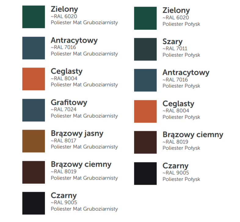 Szeroka paleta kolorystyczna, w tym m.in. powłoki drewnopodobne, dają poczucie komfortu i spełnienia oczekiwań Inwestora. Dzięki zastosowanym rozwiązaniom, ukształtowanie terenu nie ma znaczenia i nie stanowi żadnej przeszkody w ich montażu.