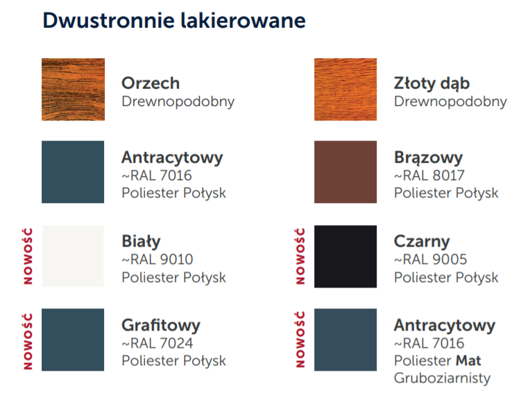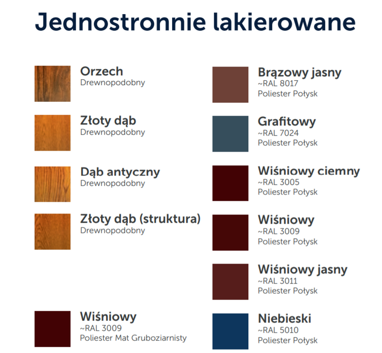 - połysk, mat lub drewnopodobny jednostronnie lakierowany: