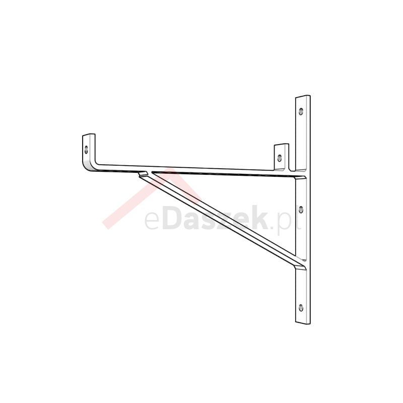 Ocynkowany ogniowo płaskownik stalowy; oferowany w wersji naturalnej (nielakierowanej) lub malowanej proszkowo. Istnieje możliwość dostarczenia wsporników polakierowanych na nietypowy (inny niż wymieniony w tabeli) kolor za dodatkową dopłatą (termin realizacji do 10 dni).