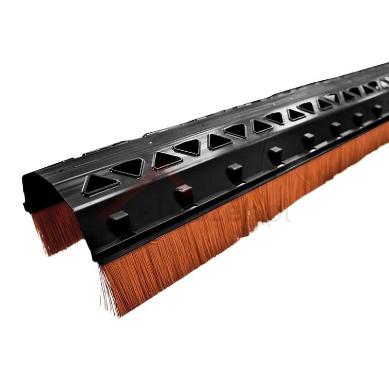 Element wentylacyjno-uszczelniający, zabezpieczający połać dachu przed deszczem, nawiewanym śniegiem, wilgocią, kurzem i pyłem, który umożliwia jednocześnie zachowanie odpowiedniej wentylacji dachu. Powierzchna wentylacyjna ok. 200 cm2 /mb. Wywietrznik kalenicowy ze szczotką można montować niezależnie od warunków atmosferycznych. Trwały, odporny na czynniki pogodowe i promieniowanie UV.